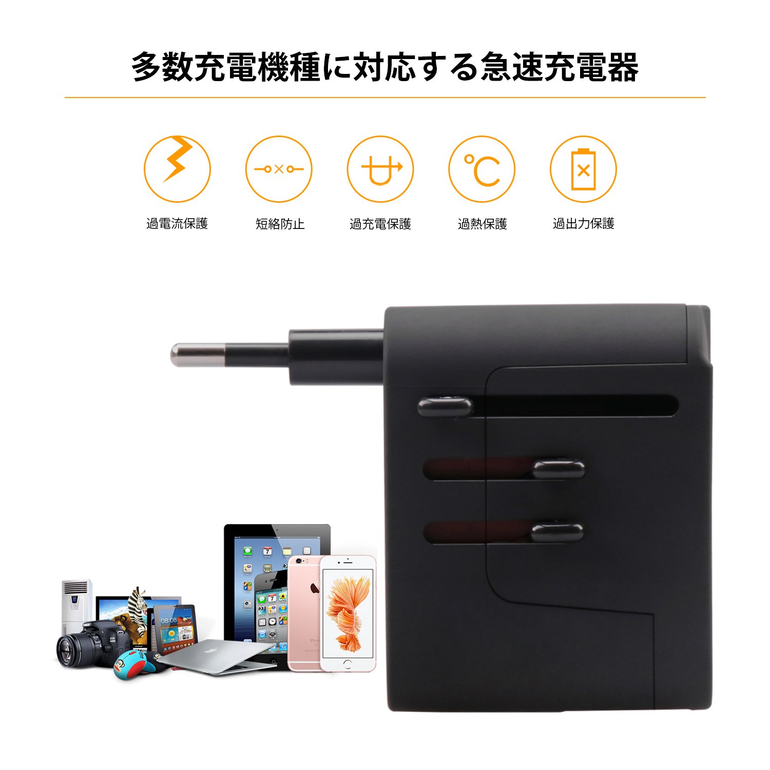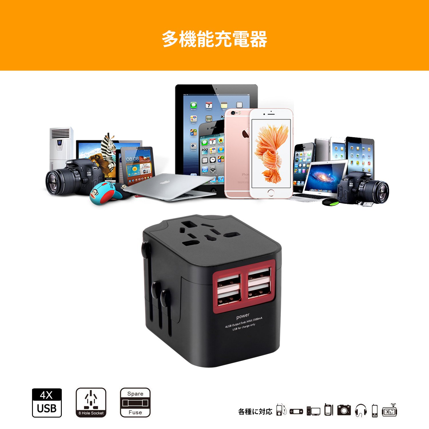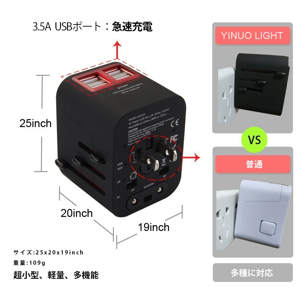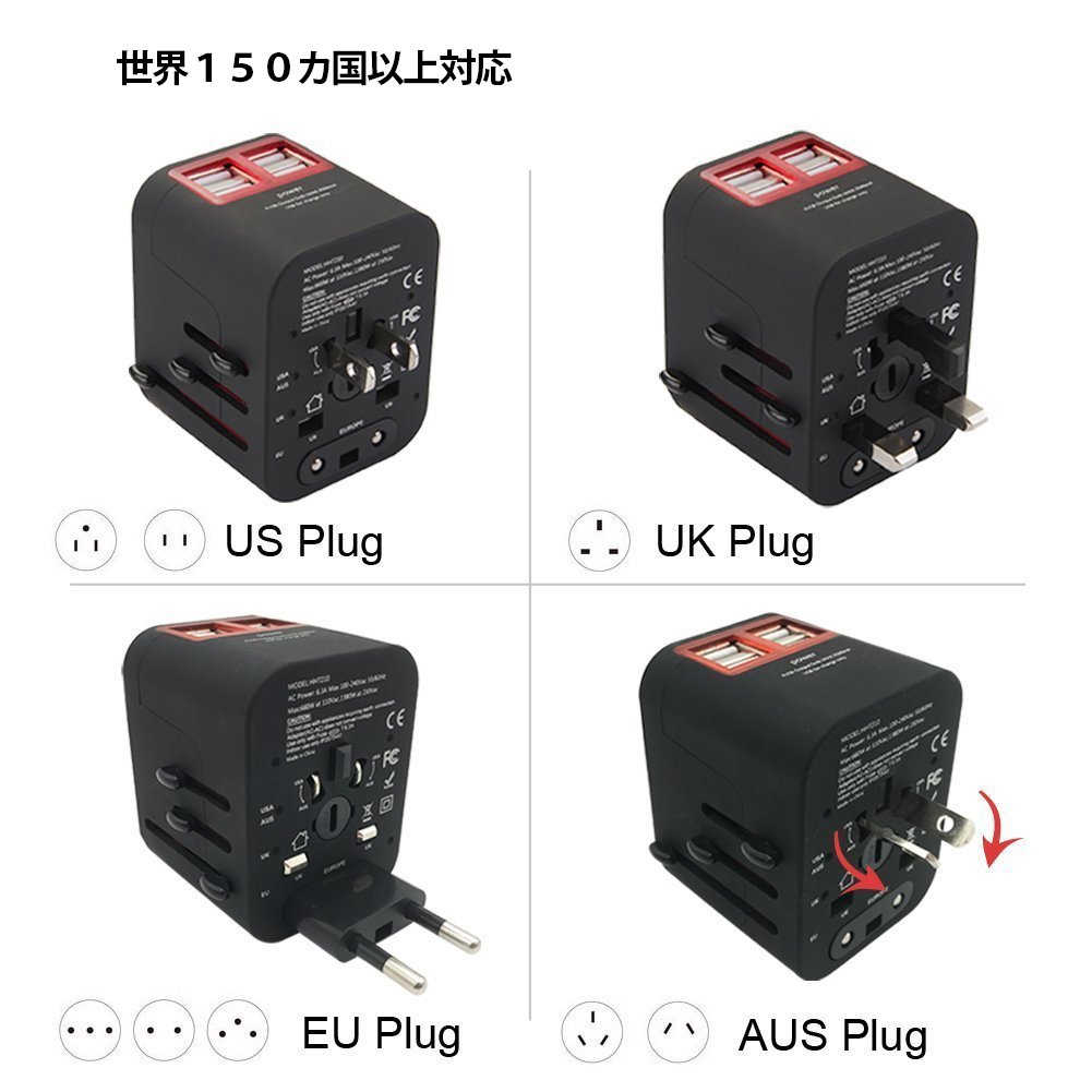 It is possible to charge four smartphones from USB at the same time while charging laptop PC overseas.
