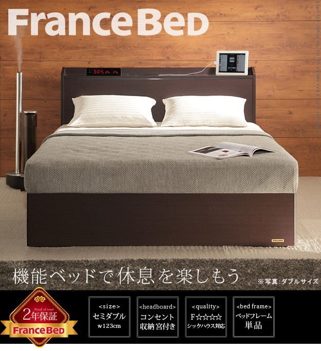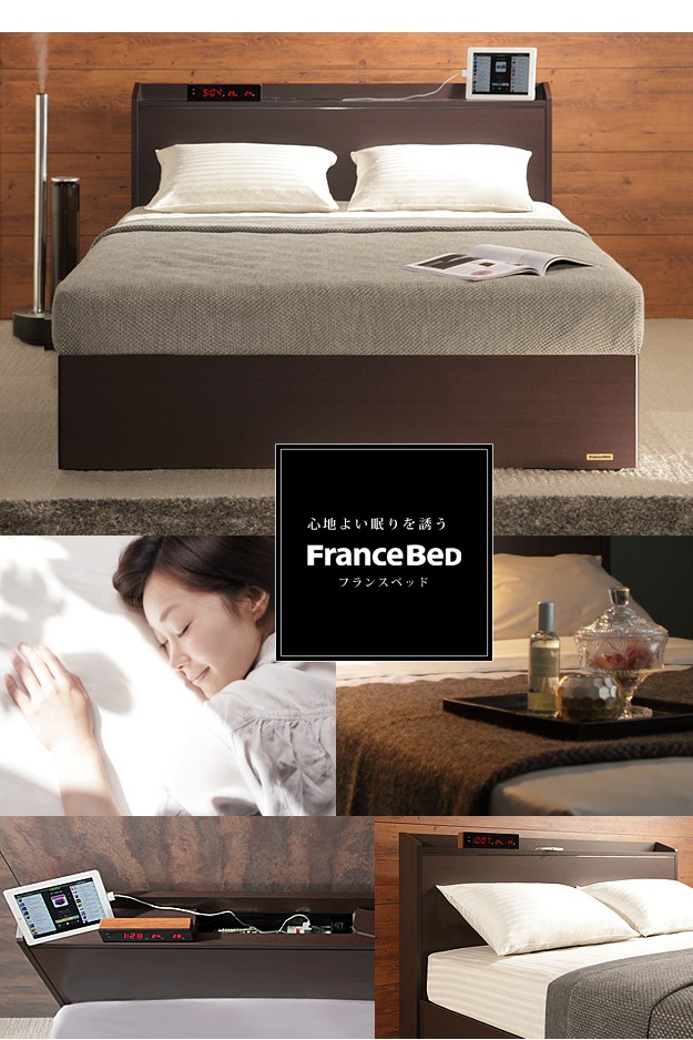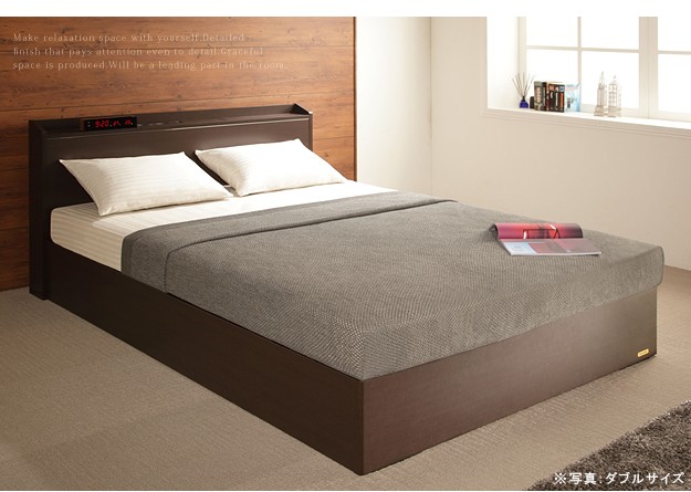 【宮付き・タップ収納付き・コンセント付きのシンプルなベッド】ヘッドボードには文庫本や携帯電話などが置けます。フラットなヘッドボードで壁にぴったり寄せて使えます。ベーシックなシンプルデザイン。フラットなデザインなので2台並べて使用できます。