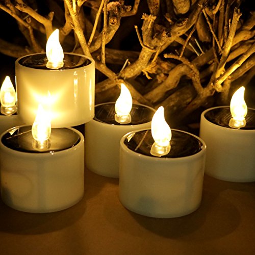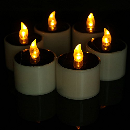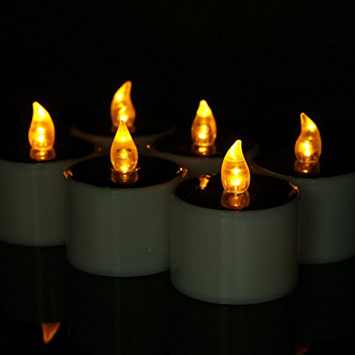 Youngerbaby 6 Pieces Yellow Solar Power LED Light Candles, Flameless Flicker Solar Electronic Nightlight Powered-Plastic Candles for Outdoor Hiking Camping, Yard, Outdoor, Wedding, Party