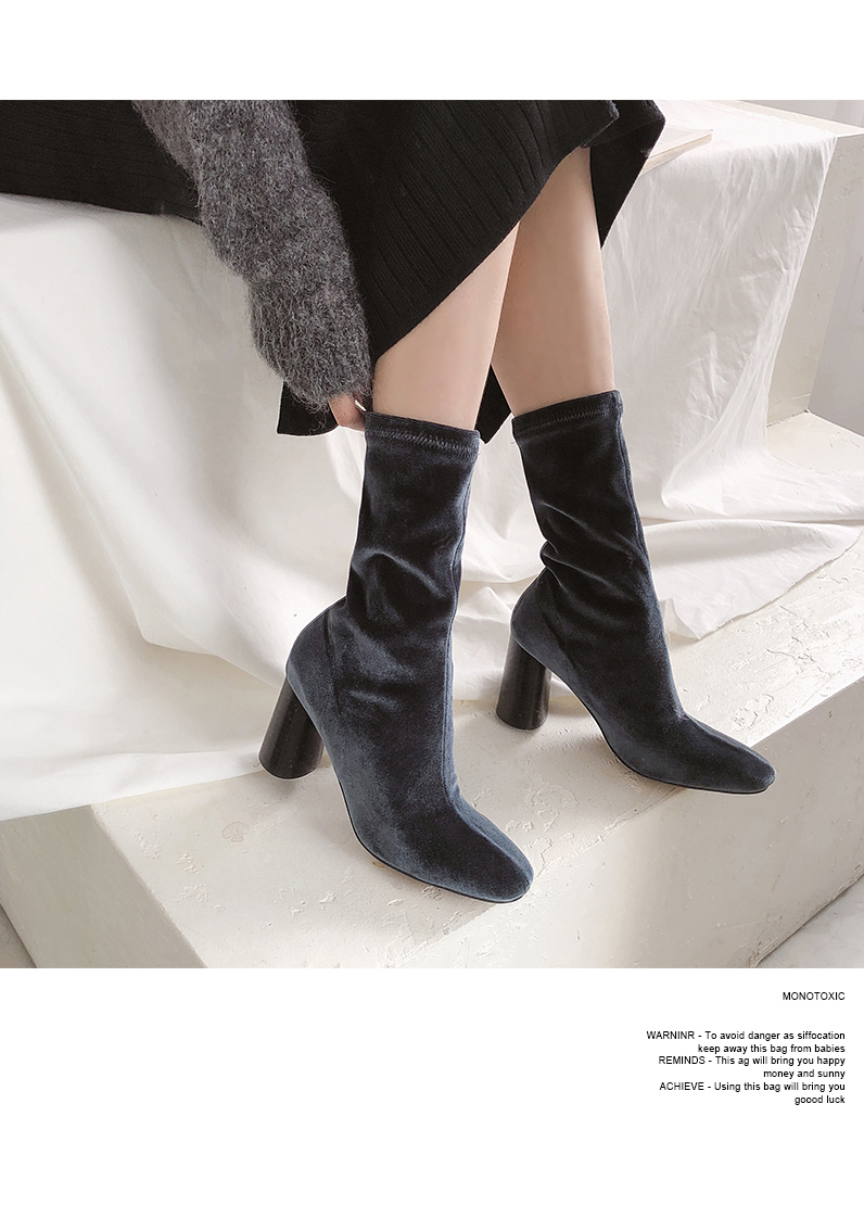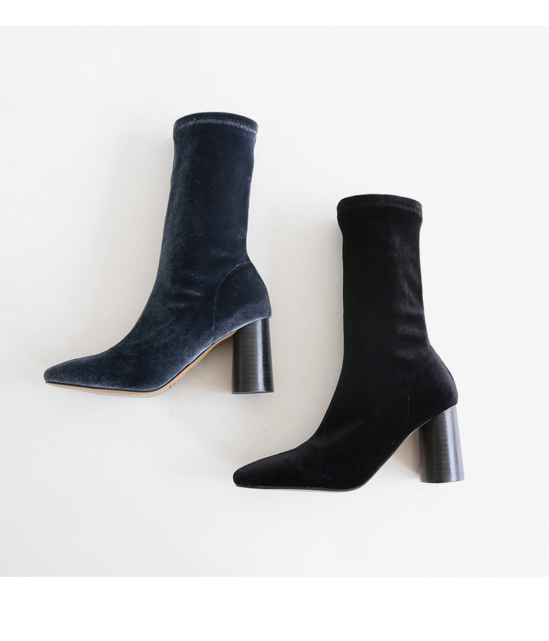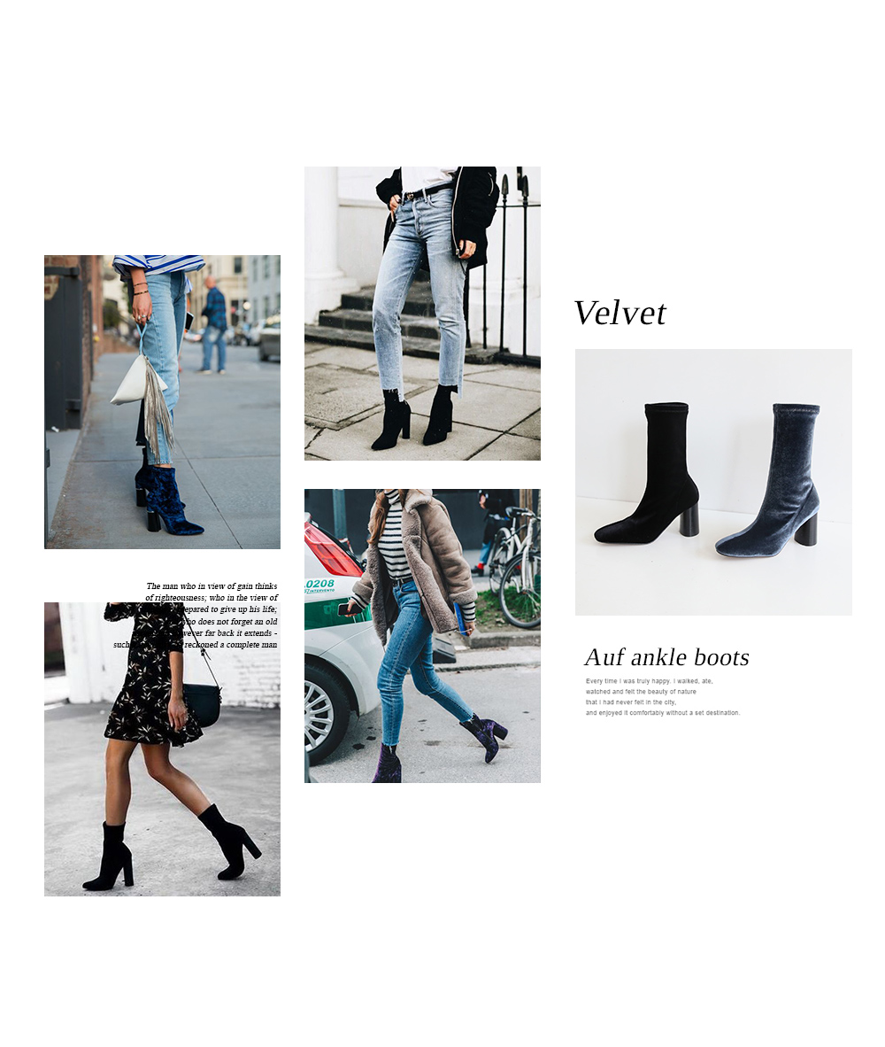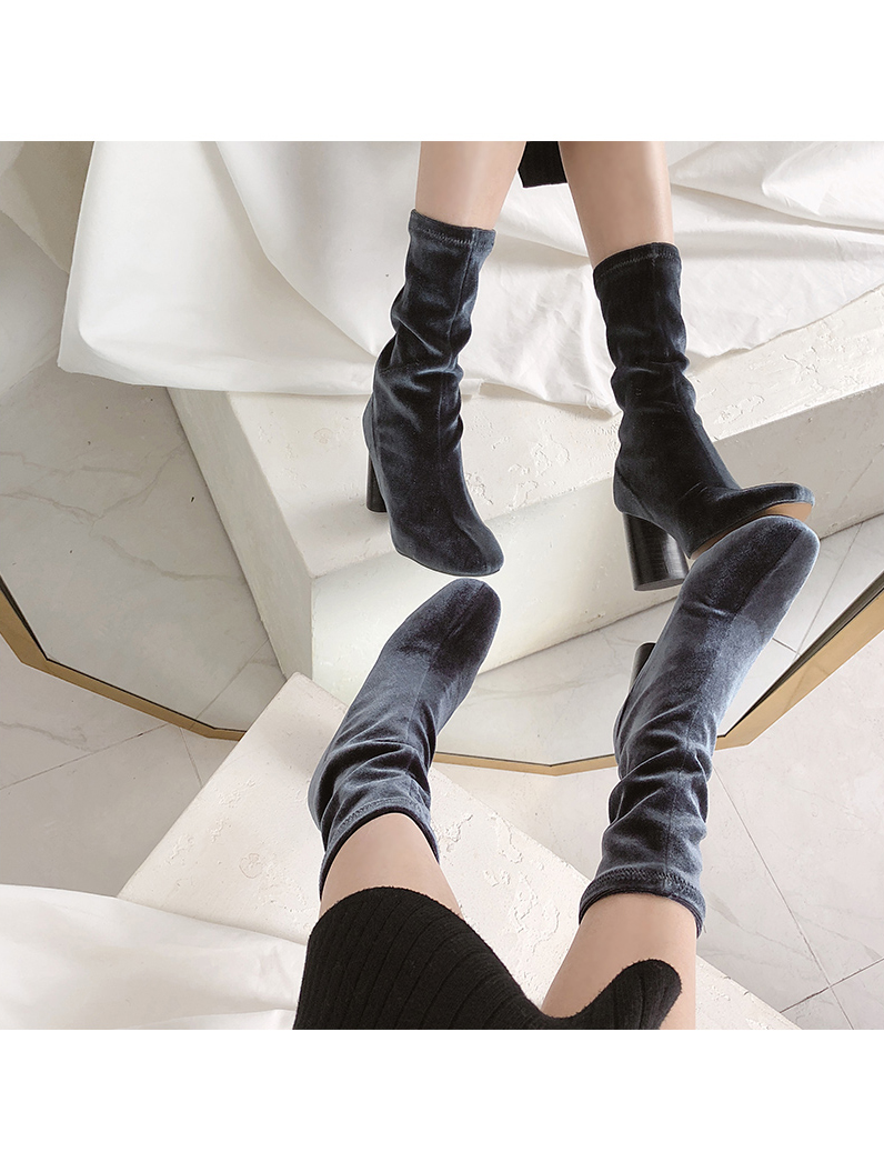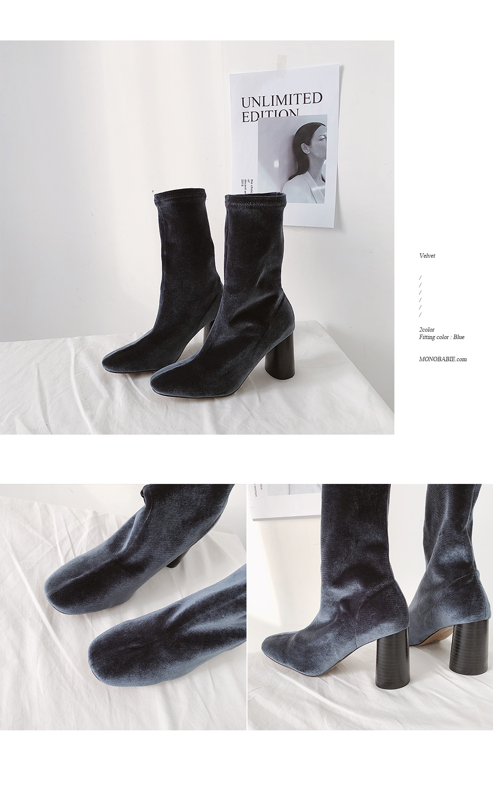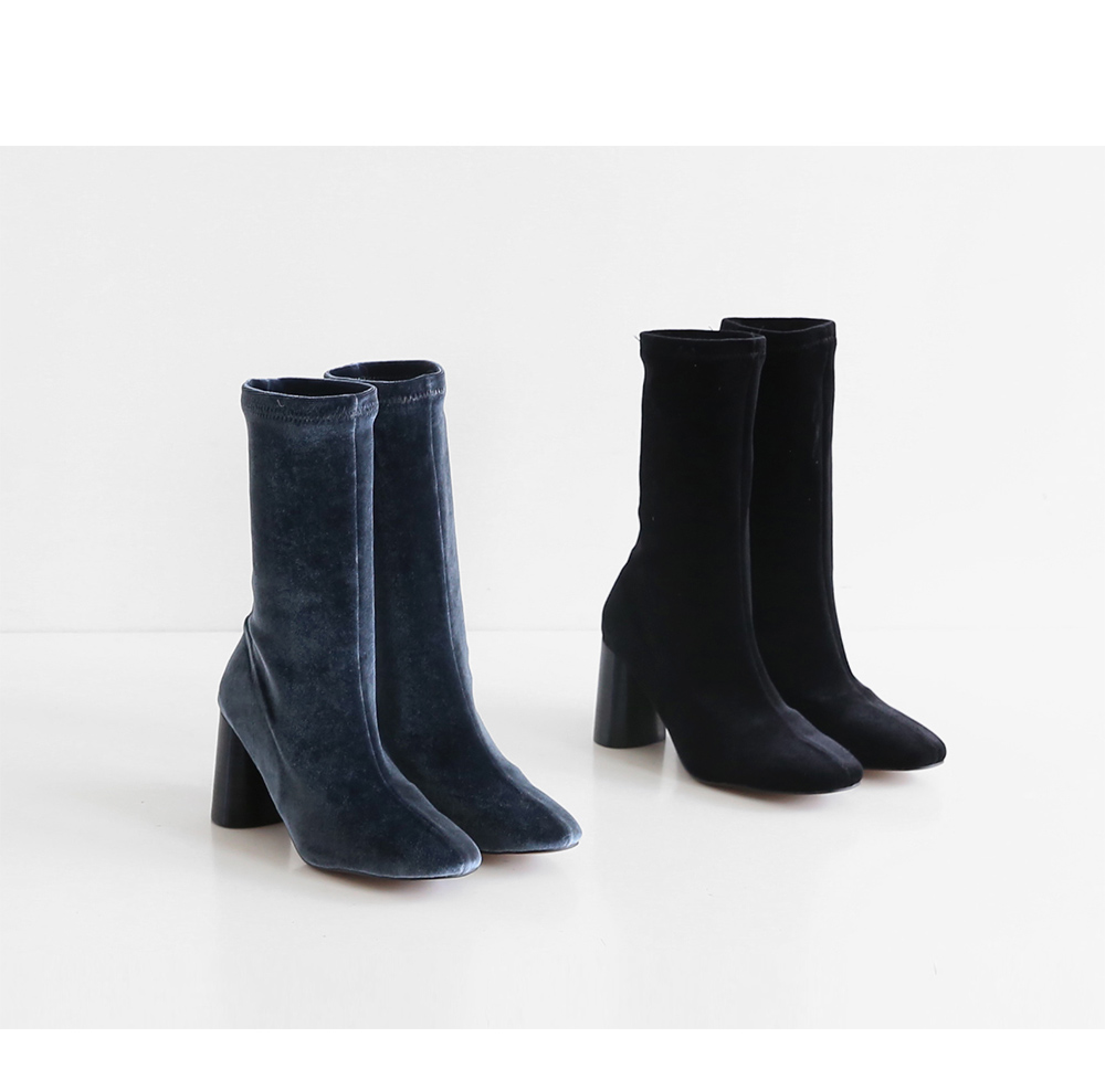 웜한 터치감의 벨벳 앵클부츠입니다.