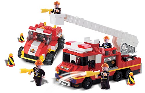 -. Feature : Build a fire truck with actual lights and sound plus a sturdy roadster unit! / Comes with an extendable ladder and many detailed accessory pieces. / Set includes 5 action figurines. / Fully compatible with other leading brands. / For ages 6 and up.