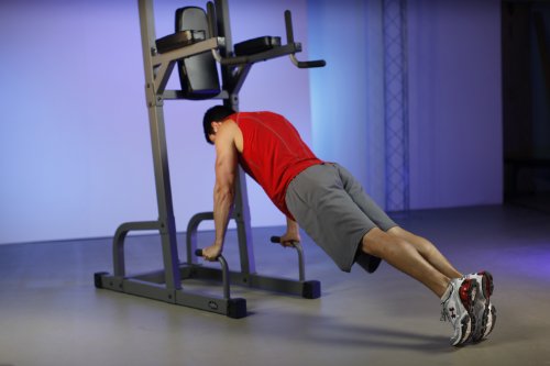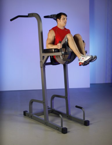 - Feature : Includes split handle grip, tricep dip handles, push-up handles and vertical knee raise (VKR) / Angled ergonomic back pad and contoured arm pads / 11-gauge steel mainframe construction with scratch resistant powder coat finish / Ultra thick 3" Duracraft cushions offer firm support and double stitched, tear-resistant Duraguard vinyl