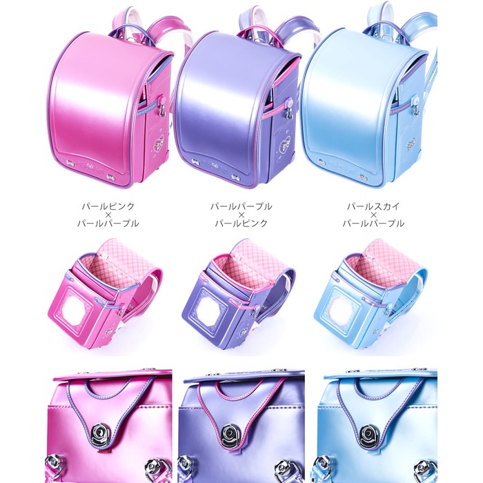 어깨 끈 뒤 소재:컬러 클라리노 중량 약1080g 컬러 펄 핑크×펄 퍼플,펄 퍼플×펄 핑크,펄 스카이×펄 퍼플 기능 핸들(손잡이)부착 A4북 파일 수납 ## 것게 되 락 T배 캔 후와(불화) 인 오 숄더 리브 구조 어깨 벨트 좌우D캔부 마치(깊이,폭)수:1단+와이드 성형 포켓 전포켓:와이드 성형 포켓 마치(깊이,폭) 기능:다부지게 가이드 대마치(깊이,폭) 싸이드:양나스카《》 원터치정 내장:체크 무늬 내장 기능:항균 소취 이너 반사재:반사 테이프반사 판반사 형압 특징 콤팩트에 A4북 파일이 편안하게 수납.후와(불화) 인 오 숄더 리브 구조에 딱 피트.(주식,순무우먹이)카브《세》와 대마치(깊이,폭)로 리본 대갈못 부착.큰 물건을 수납 할 수 있는 와이드 성형 포켓을 채용.## 것게 되 락 T배 캔에 등에 피트.사뿐히 # 시리즈[콤팩트 리미티드 사내 아이] [콤팩트 리미티드 소녀]