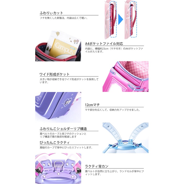 원본상품명: ふわりぃ ランドセル ふわりぃ コンパクト ワイドポケット パ?ルカラ? 女の子用ランドセル 2018年版