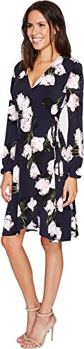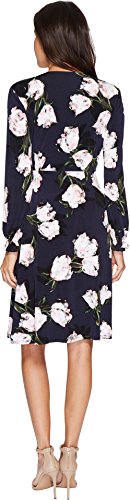 Ellen Tracy full sleeve drapey jersey mixed floral wrap dress