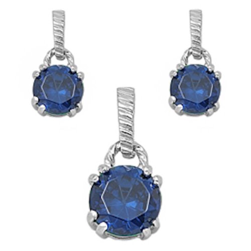 -. Title : Round Blue Simulated Sapphire .925 Sterling Silver Earrings And Pendant Set