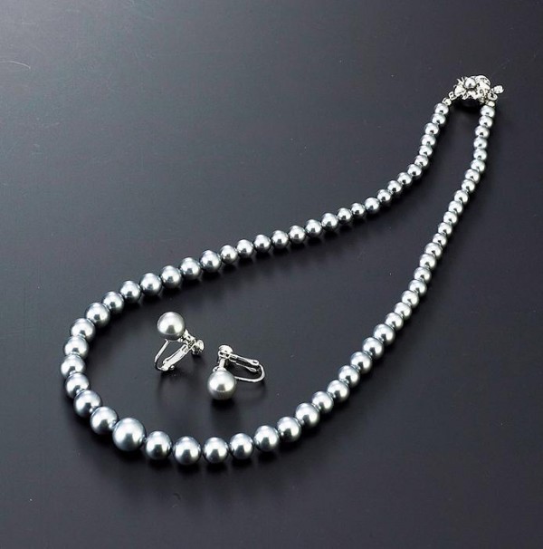 フォーマルシーンに落ち着いた華を添える、貝パールです。ネックレスとイヤリングのセットです。