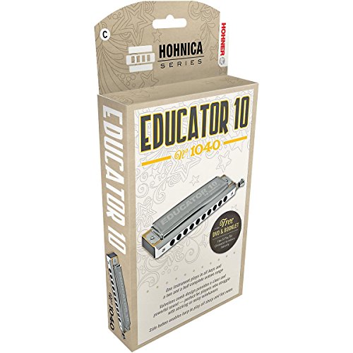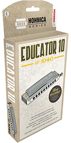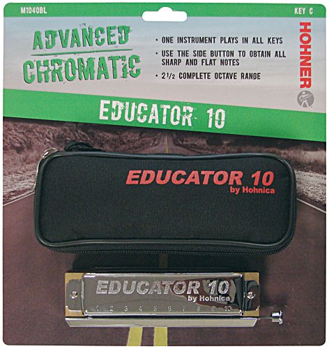 ReleaseDate : 2009-05-19 Studio : Hohner Inc, USA Publisher : Hohner Inc, USA Binding : Electronics Product Description The Valve less Harmonica! Hohner's Hohnica Series Educator 10 chromatic harmonica sports a comb design that provides a clear and powerful sound without the need for valves. Good news for players who struggle with sticking or noisy wind savers! Its affordable price also makes it a good starter chromatic, both for novices and players making a transition from smaller diatonic models. Great for school programs! The Educator 10 is a 10 hole, 40 reed chromatic harmonica in the key of C. It comes with a zippered black padded polyester carrying pouch with wrist strap, and has new retail packaging in the form of a cardboard box. 0