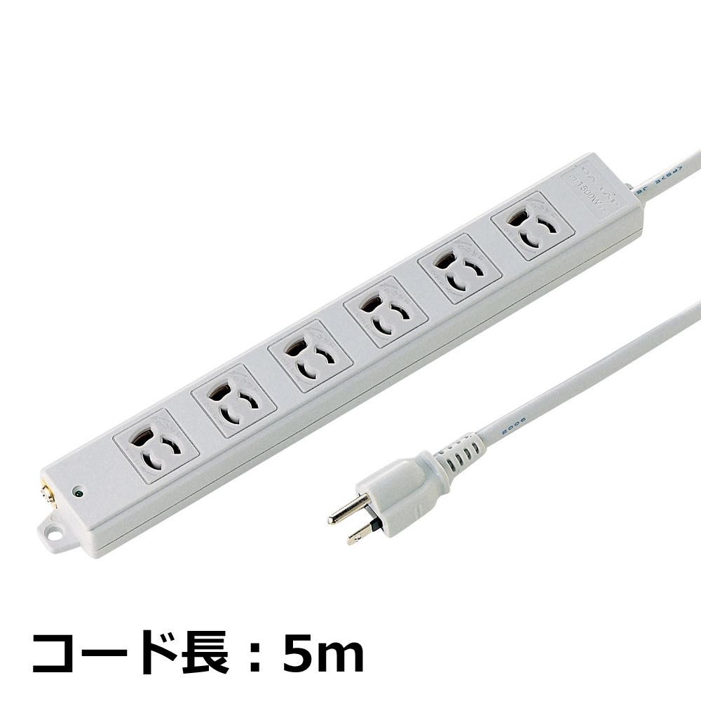 6個口(3P抜け止め)、VCTFコード仕様、3Pプラグ(絶縁キャップ付き)のタップです。電源状態が確認できる通電ランプ付き。裏面にマグネットが付いているので、スチールのデスクなどに仮固定することができます。メンテナンスがしやすく便利です。 |