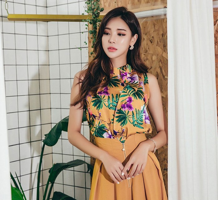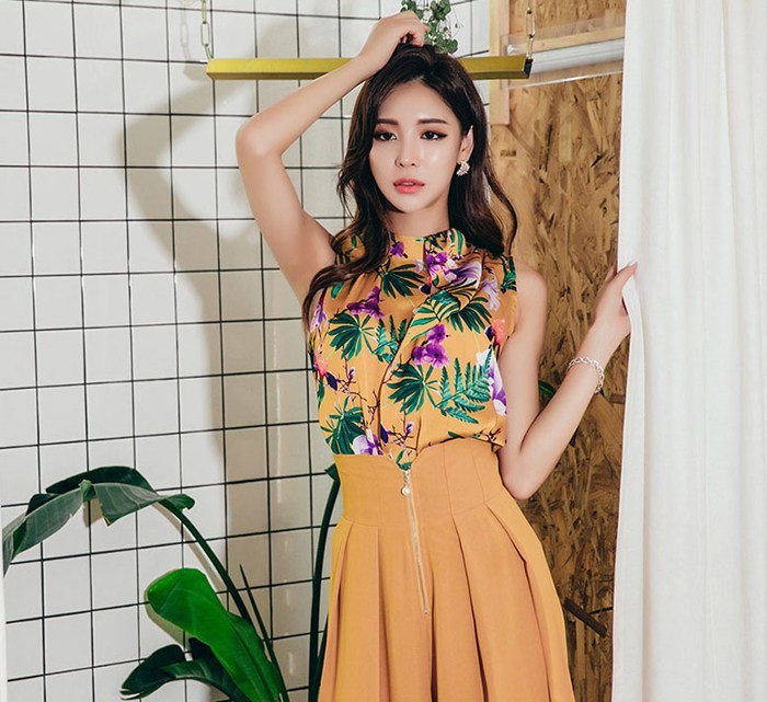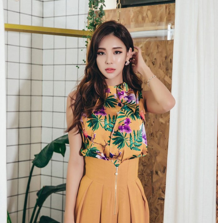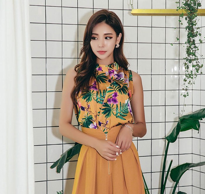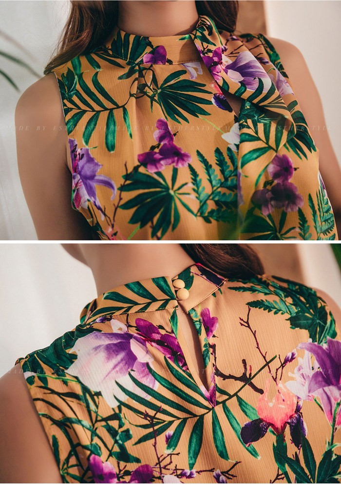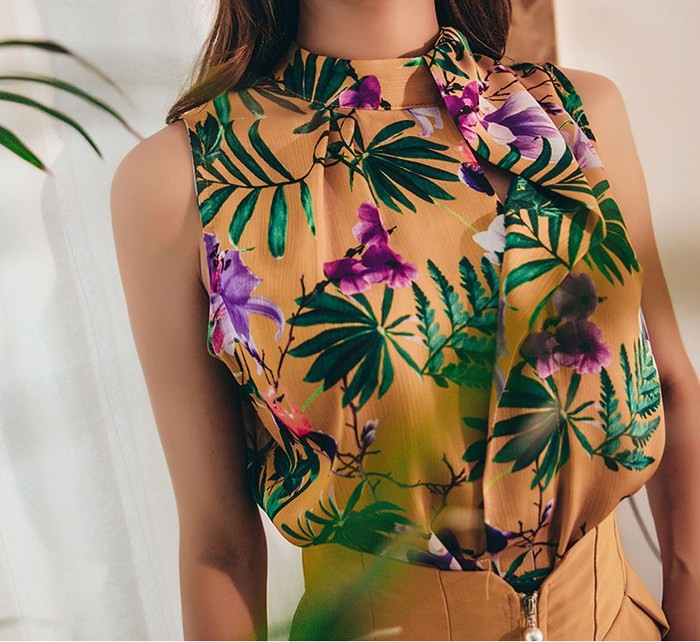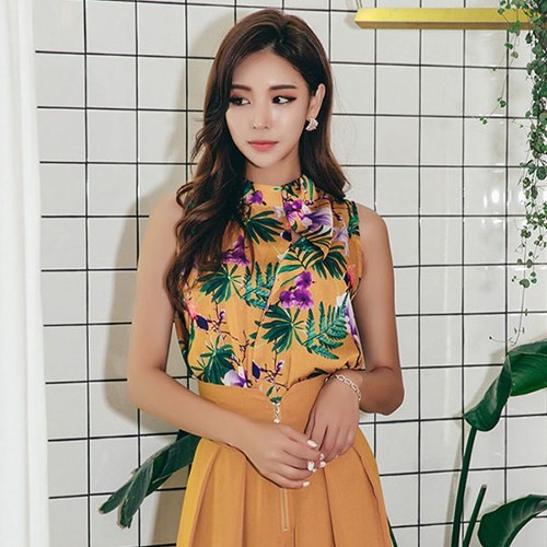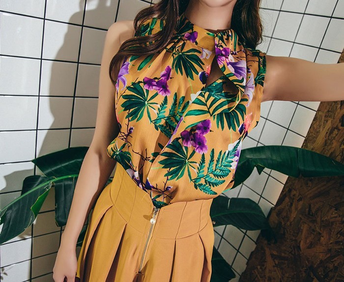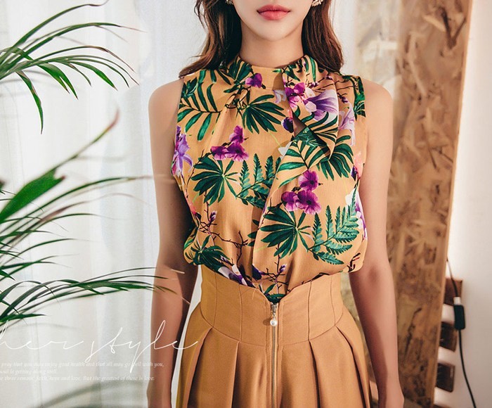 商品名:ブラウス プルオーバー ノースリーブ 花柄 フラワー