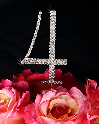 Unik Occasions Simply Elegant Crystal Rhinestone Monogram Cake Topper, Number 4