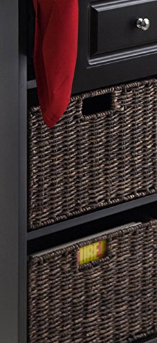 -. Feature : Overall dimensions: 18W x 13D x 71H in. / Constructed of composite wood / Elegant black finish / Includes an adjustable shelf inside door / One drawer and 2 foldable corn husk baskets