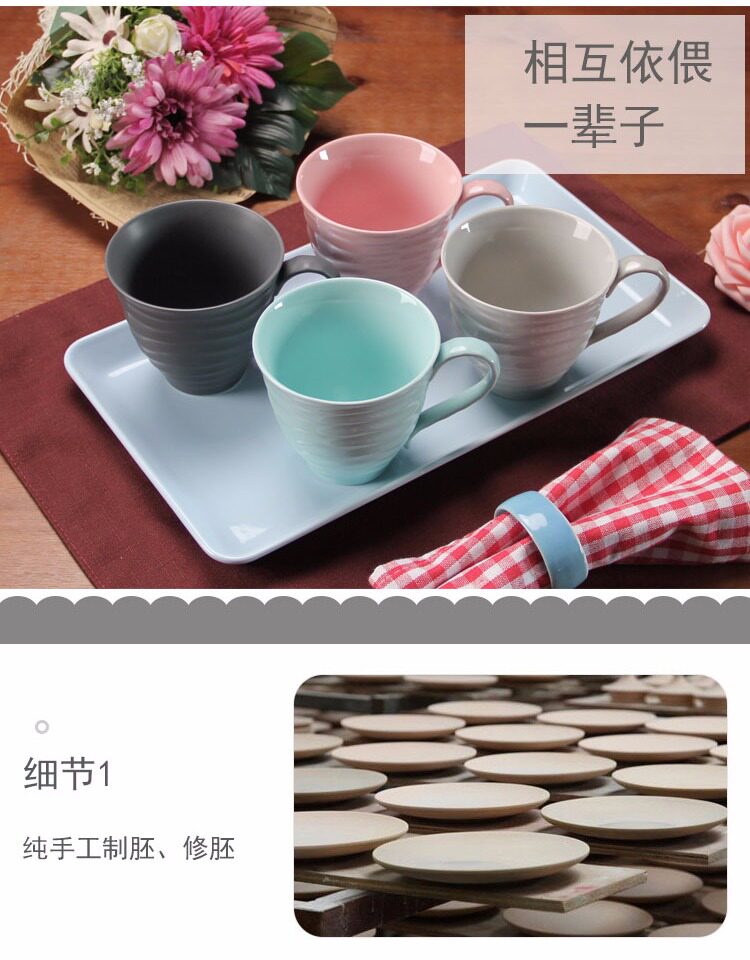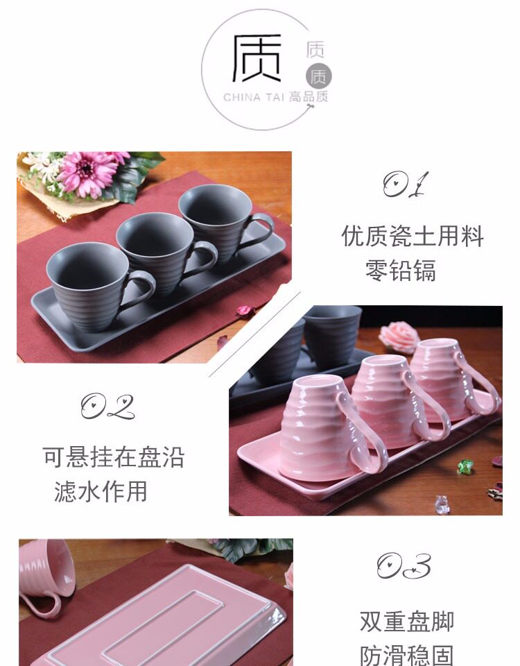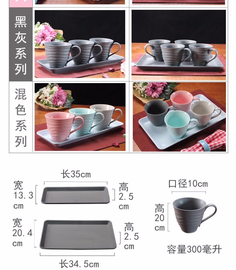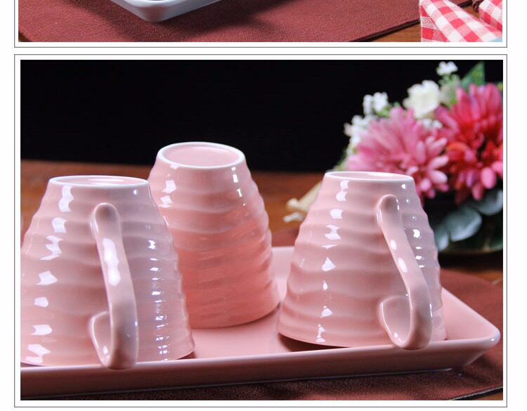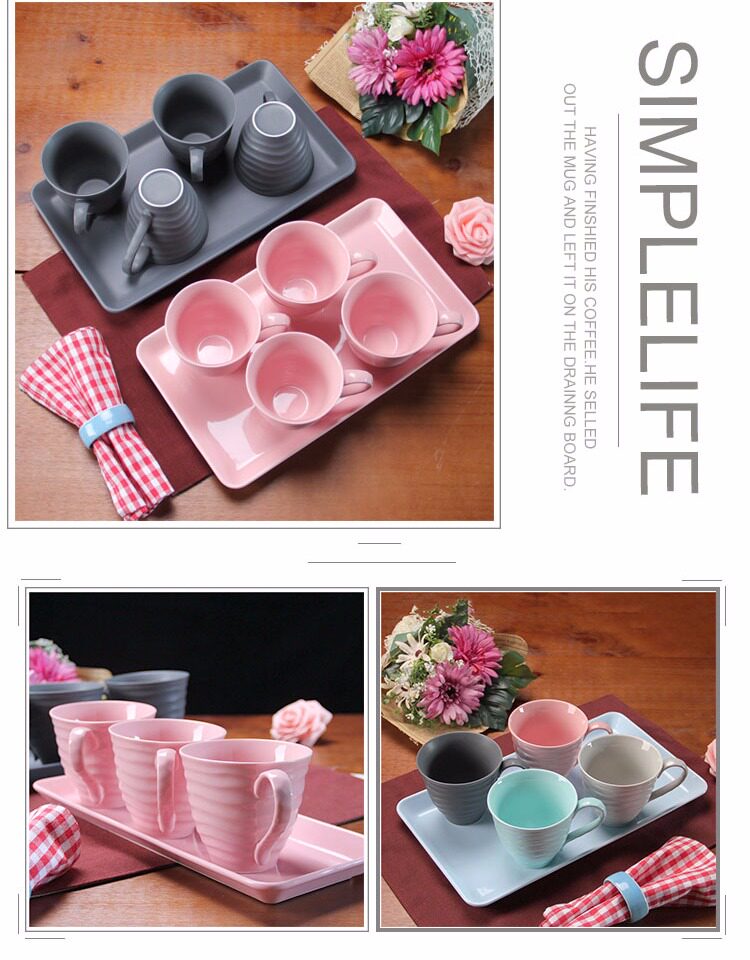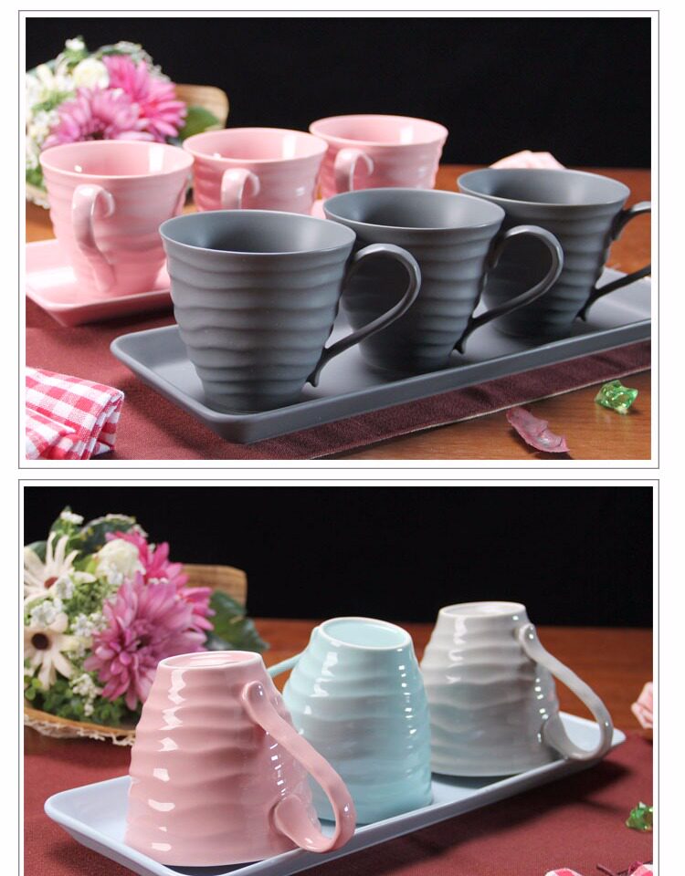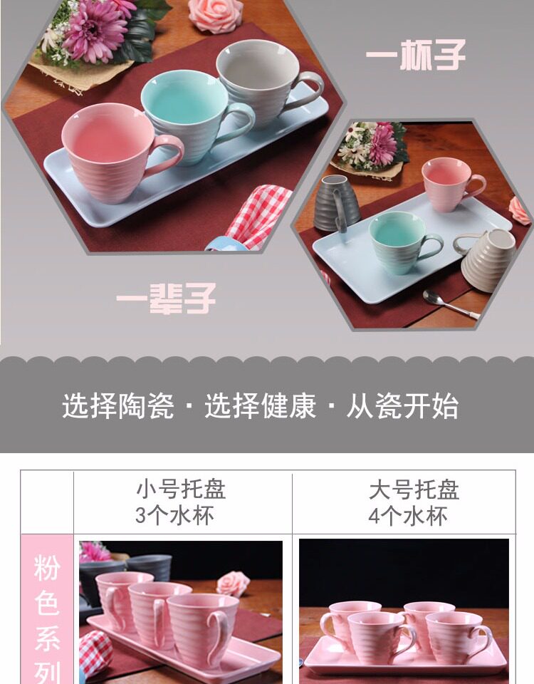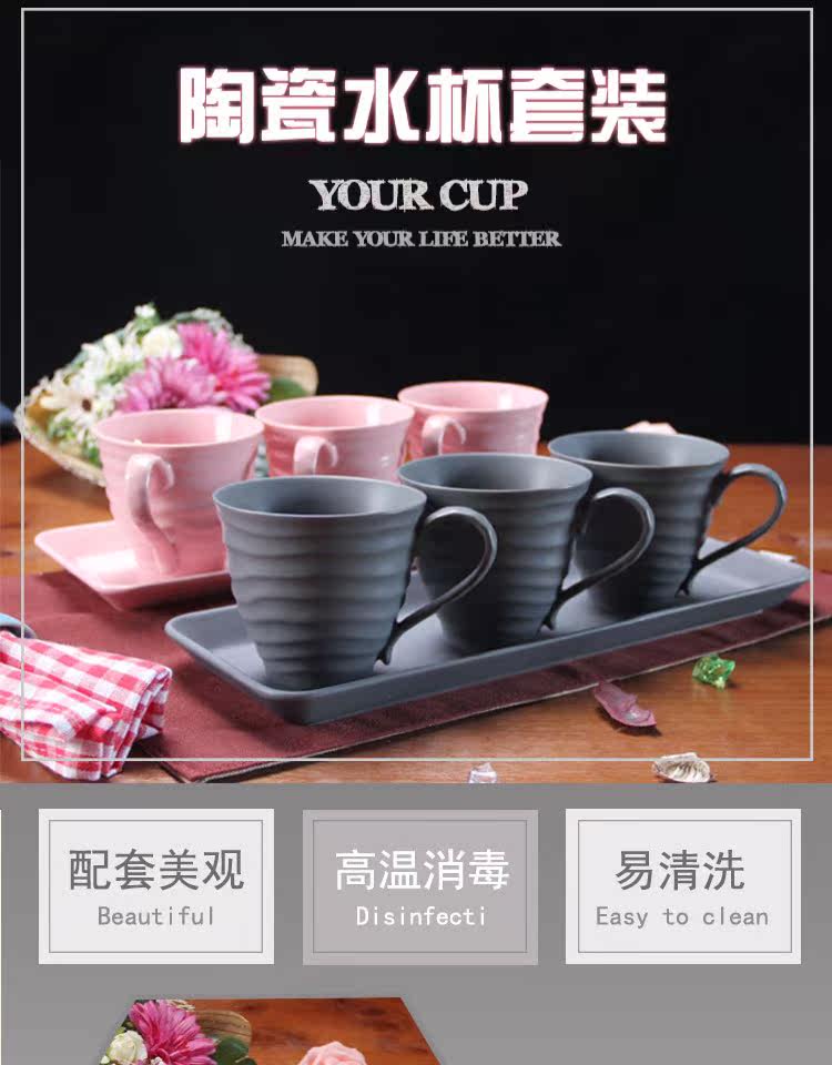 水杯具套装 家用陶瓷托盘客厅水杯套装 欧式简约咖啡杯子水具套装