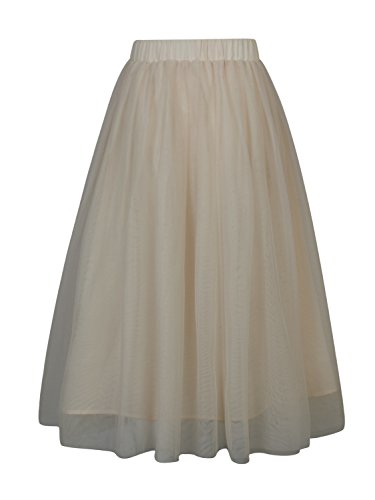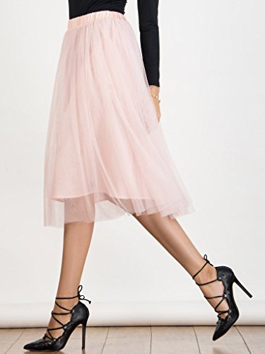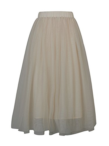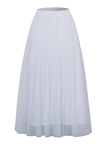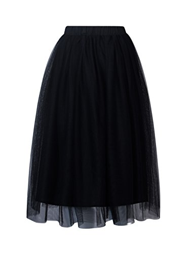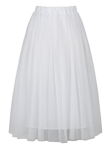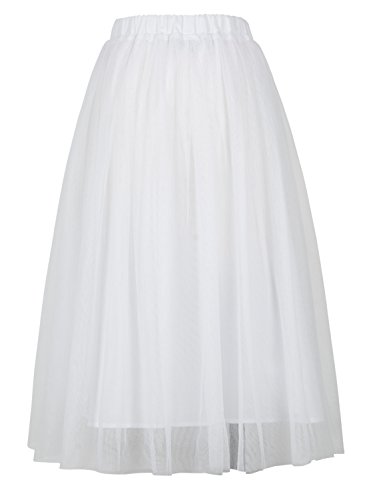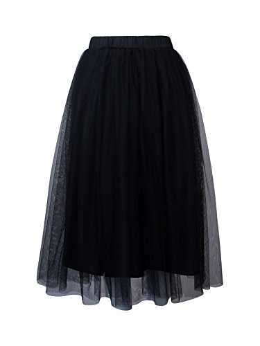 Joeoy Women's Elastic Waist Ballet Layered Princess Mesh Tulle Midi Skirt