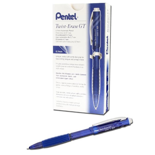 Pentel Twist-Erase GT, 0.7mm, Mechanical Pencil Transparent Blue, Box of 12 (QE207C)