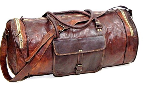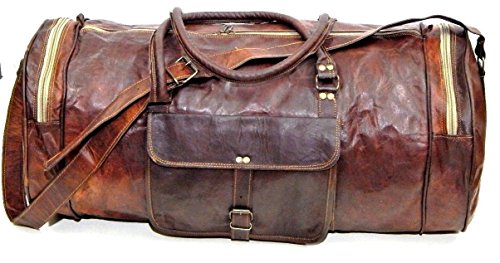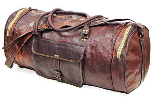 -. Title : 24" Vintage Style Leather Brown Duffel Gym Sports Lage Travel Bag Handmade Free Size