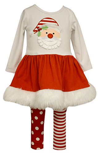 -. Binding : Apparel -. Brand : Bonnie Jean -. Department : baby-girls -. Feature : Santa applique on solid bodice to knit skirt with white hem to dot and stripe knit pant. -. Label : Bonnie Jean -. Manufacturer : Bonnie Jean -. MPN : X08307 -. PartNumber : X08307 -. ProductGroup : Apparel -. ProductTypeName : PANTS -. Publisher : Bonnie Jean -. Studio : Bonnie Jean -. Title : Bonnie Jean Girls Santa Tutu Holiday Legging Set