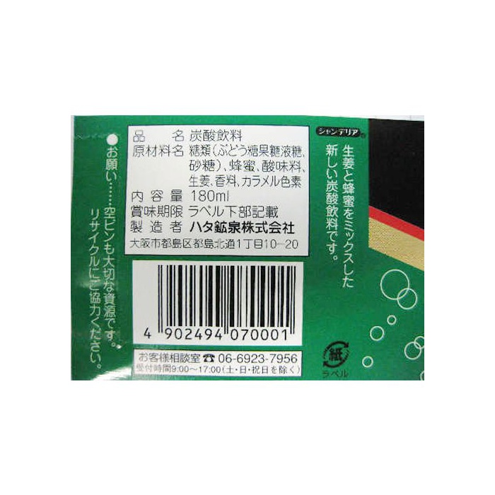 원본상품명: ハタ?泉 ジンジャ?エ?ル 180ml×30本