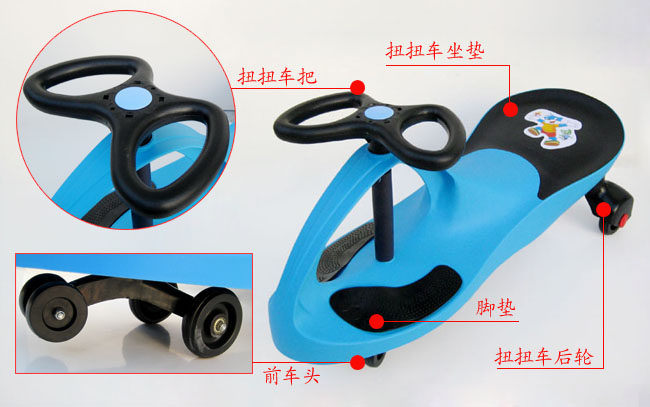 儿童扭扭车,娱乐健身车,自上行以来,正迅速风靡各地,它操作筒单,无需电瓶电池和转用装置,只要左右转动方向盘,就可随意前后行驶,它以神奇的动力,令人遐想的外观设计,集环保,娱乐,健身于一体,深受孩子们的喜爱.