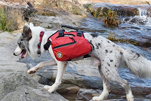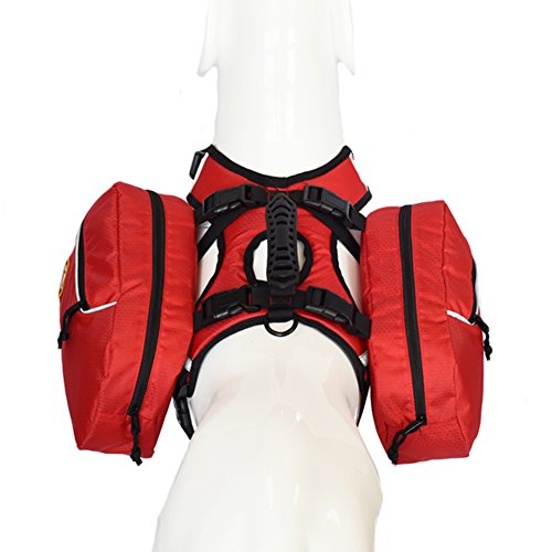-. Feature : Easy fit water-resistant nylon dog harness backpack ,S sized suitable for 20-27 in chest.M size suitable for 25-32 in chest.L size suitable for 31-40 in chest. / Plastic Clip on bags allows easy removal to instantly turn into a vest harness.Includes carrier handle with leash hook on the front and rear. / 4-Pocket backpack can hold water bottles, poop bags, toys, collapsible dog bowls, first aid, weights, etc.Always be prepared for any situation such as injury, first aid situations and emergencies. / This Dog Backpack with load compression system ensure load stability and weight distribution. Please ensure your dog carries no more than 25% of their body weight in their dog pack. / Ideal for hiking, training, outdoor activity and service dog use. Let your dog feel a sense of purpose and refocus, helps to prevent barking and anxiety so you enjoy stress-free activities.