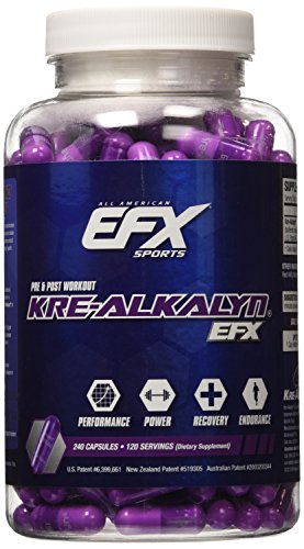 -. Binding : Health and Beauty -. Brand : All American EFX -. Department : Health and Personal Care -. EAN : 0885264066265 -. Feature : pH-Correct Creatine / Buffered, Stable, Patented / Tested For Purity And Banned Substances -. IsAdultProduct : 0 -. IsAutographed : 0 -. IsMemorabilia : 0 -. Label : All American EFX -. LegalDisclaimer : Required Proposition 65 Warning for California State residents only - This product contains chemicals known to the State of California to cause cancer and/or birth defects or other reproductive harm. (This product meets or exceeds USP and Federal standards for heavy metals.) -. Manufacturer : All American EFX -. Model : 23850 -. MPN : 2066 -. NumberOfItems : 1 -. PackageQuantity : 1 -. PartNumber : 2066 -. ProductGroup : Health and Beauty -. ProductTypeName : HEALTH_PERSONAL_CARE -. Publisher : All American EFX -. ReleaseDate : 2007-12-13 -. Size : 240 -. Studio : All American EFX -. Title : All American EFX Kre-Alkalyn EFX, 240 Capsules -. UPC : 737190001660