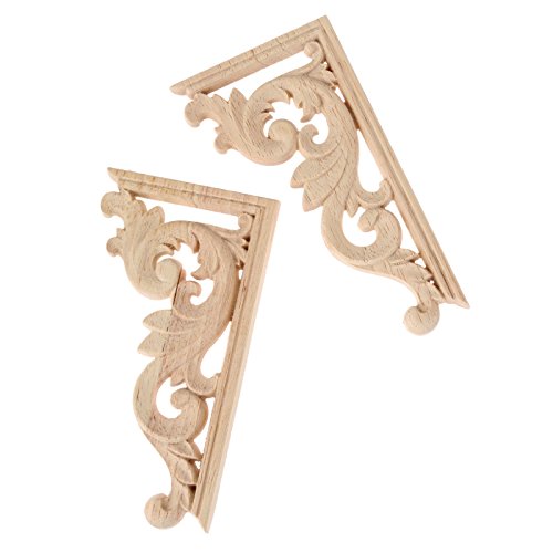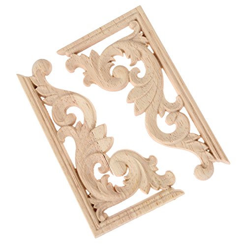 4pcs 13x7cm(left) Vintage Wooden Carved Corner Onlay Furniture Wall Decor Unpainted Frame Applique