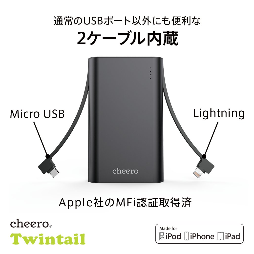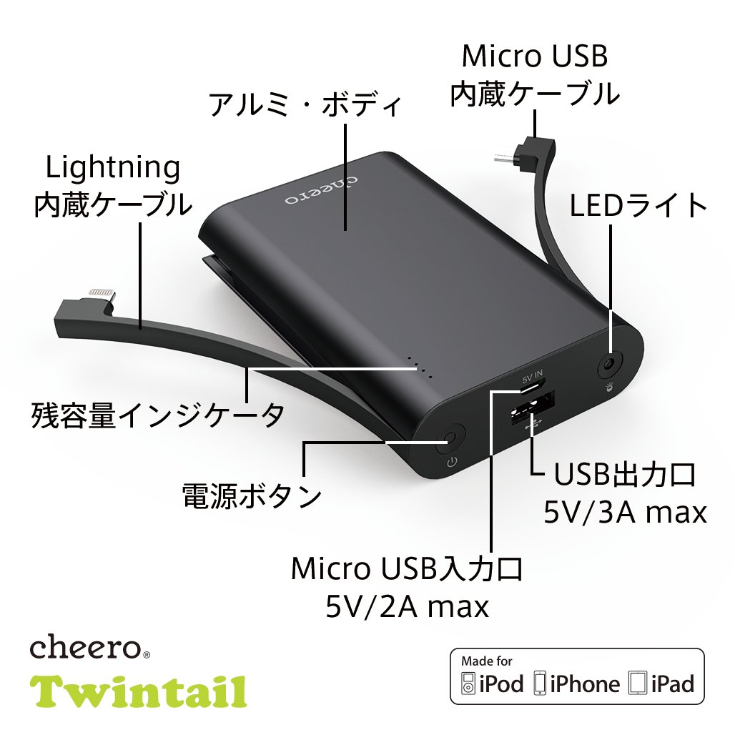 【Product name】 cheero Twintail 10050mAh mobile battery