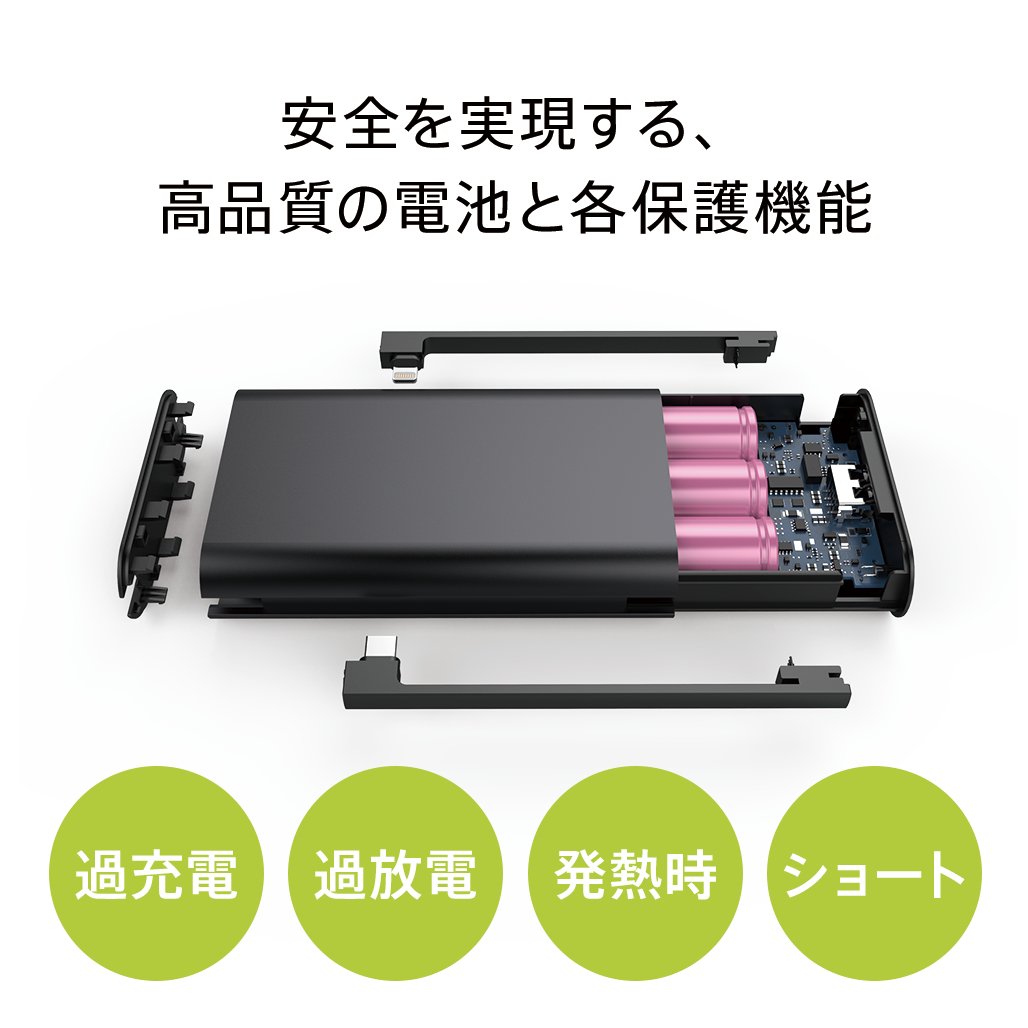 ① Built-in charging cable Micro USB × 1, Lightning × 1