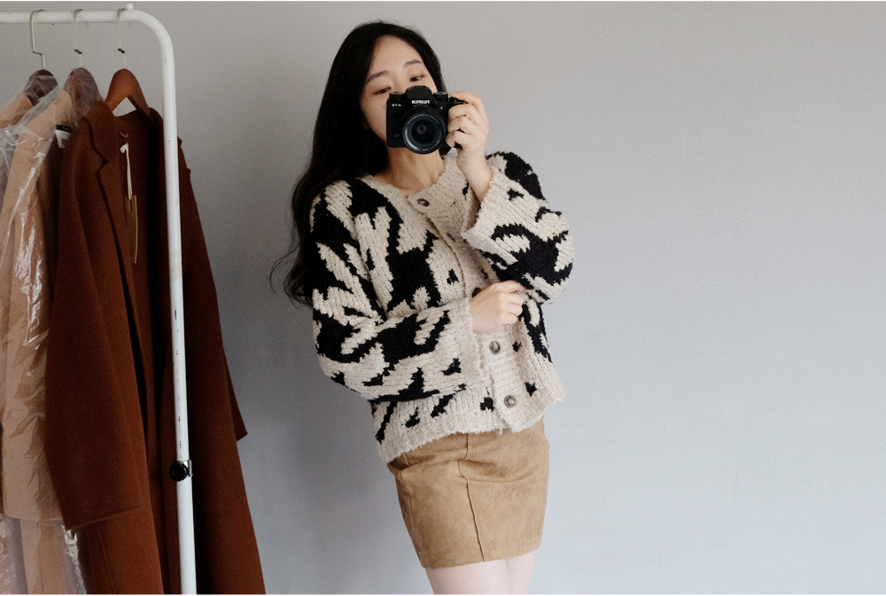 밋밋하지 않은 유니크한 패턴으로 베이직한 이너 코디에 툭-