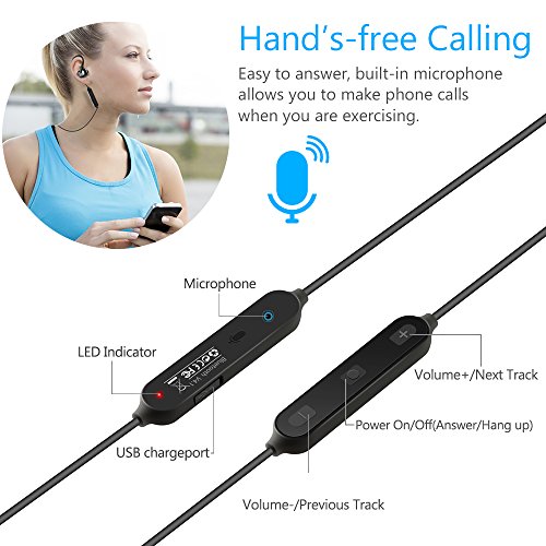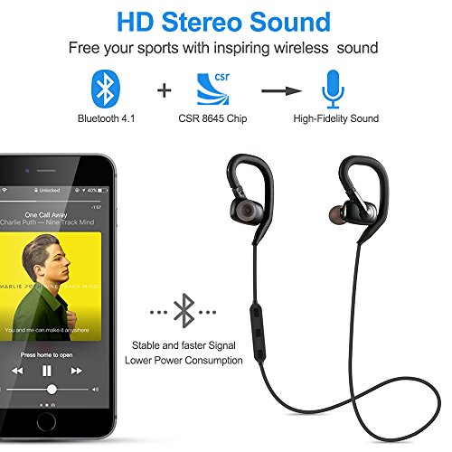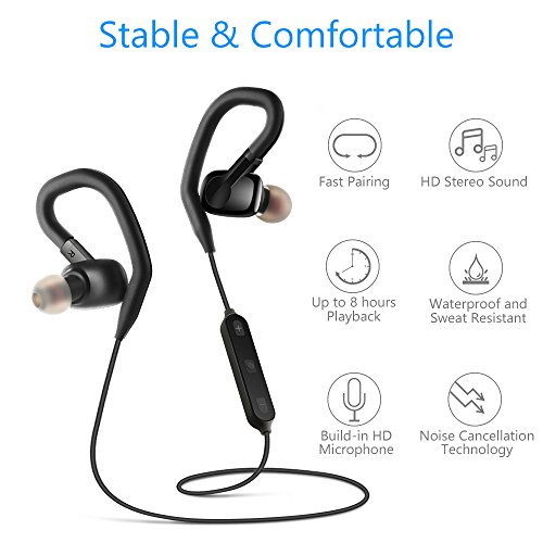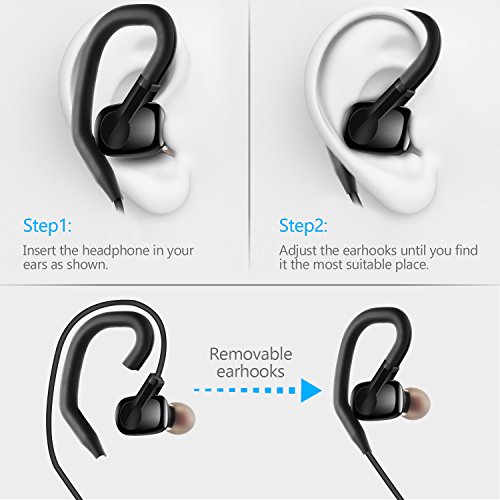 COMFORTABLE AND SECURE FIT: Extremely lightweight for only 0.5OZ, removable ear hooks with silicone ear tips to ensure your headphones stay comfortably firm in place to guarantee fatigue free ears and tangle free comfort. Perfect for running,exercise,fitness,all outdoor sports.