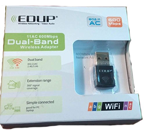 -. Feature : Dual Band (5GHz 433Mbps or 2.4GHz 150Mbps) connections for lag-free HD video streaming and gaming. Ultra-fast AC600 wireless speed with 802.11ac / Supports Windows XP / Vista / 7 / 8 / 8.1 / 10 (32/64bits) MAC OS X 10.11.X / 10.10.X / 10.9.X / 10.8.X /10.7.X / Allows your WiFi-disabled desktop computers, laptops or windows 10 tablets connect to 5G/ 2.4G wireless networks via USB with a simply plug. High Gain 5dBi Antenna for stronger and stabler Wi-Fi signal / Easy to install, use drivers CD, simply plug in the wifi adapter to connect to your wifi with the client mode or create a hotspot with the AP mode / Mini size for convenient movement without unpling it