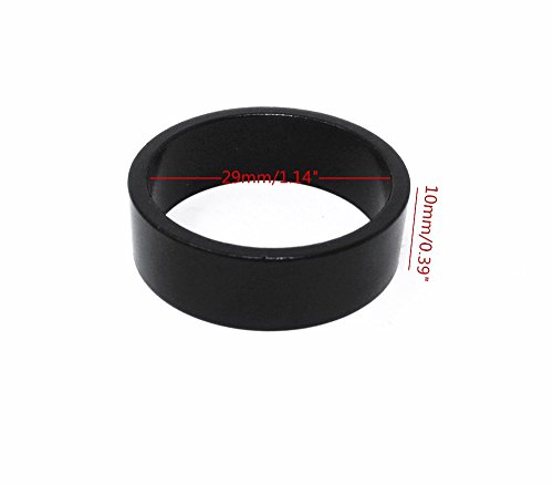 Product Description Aluminum bike fork washer Pack of 10 Color: black Inner diameter: 29mm; Outside diameter: 33mm Height: 10mm; Thickness: 2mm Fits 28.6mm heads, steerer tubes Headset spacer will make it very easy to adjust your bike stem 0