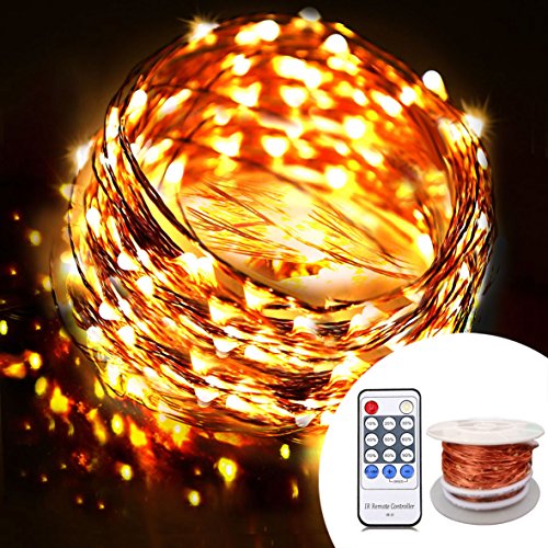 - Starry string lights with REMOTE CONTROLLER /WIRELESS ON-OFF SWITCH / DIMMER / FLASHING LIGHT - Best 120 warm white LED's on a flexible ultra - thin copper wire 40ft - Amazingly