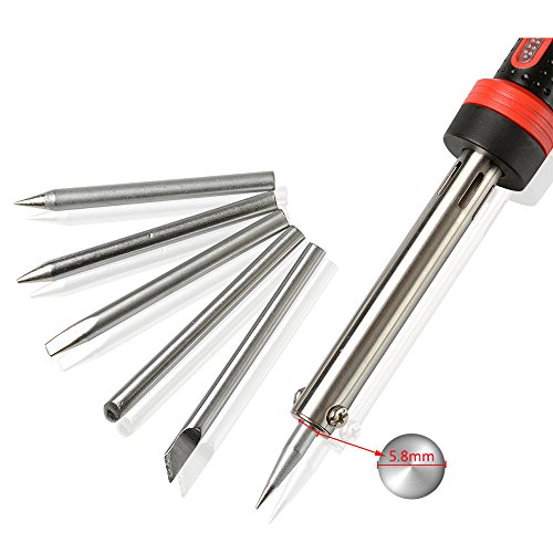 AGPTek 60W 110V Pencil Handle Adjustable Electric Gun Welding Soldering Iron Tool Set with 5 pcs Iron Tips + Solder Sucker + Holder Stand - 8 in 1 Iron Kit