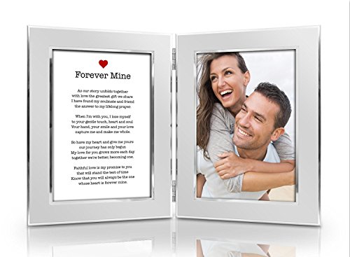 Romantic Love Poem Picture Frame Gifts for Her or Him - Forever Mine Double Hinged Photo Frames Set - Anniversary, Christmas, Wedding or Birthday Present for Wife, Husband, Boyfriend or Girlfriend