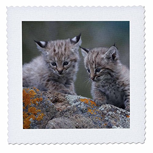 3dRose Bobcat Kittens, Lynx Rufus, Montana, USA Quilt Square, 8 x 8"