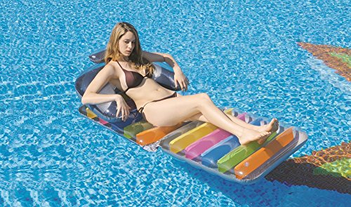 ReleaseDate : 2017-06-01 Studio : Jilong Toys Publisher : Jilong Toys Binding : Toy Product Description Made of durable, pretested vinyl with a sturdy I-beam construction, this inflatable pool float can be used as a floating pool lounger or fold it up to be used as a floating chair. It has comfortable arm and backrests to support you in either position. The 3 air chambers feel cushioned and make sure the chair won't deflate from a tiny hole. Whether you want to sit in a chair by the pool or stretch out and lounge in the water, the Jilong Folding Lounge-Chair gives you the option. Inflated dimensions: 75" x 30". Repair patch included. 0