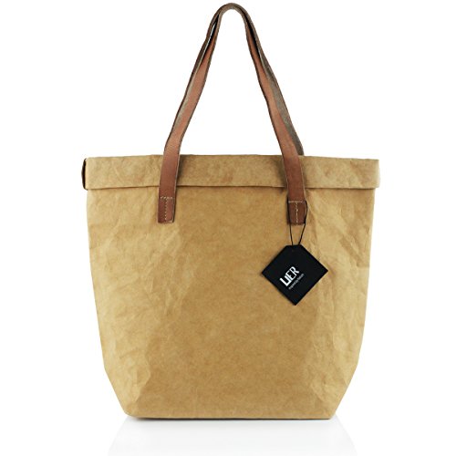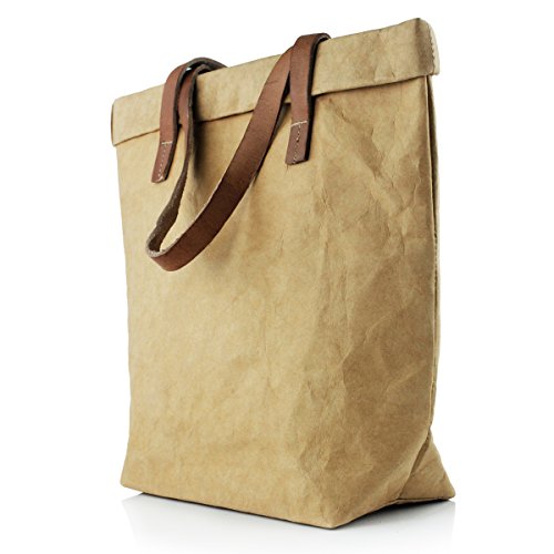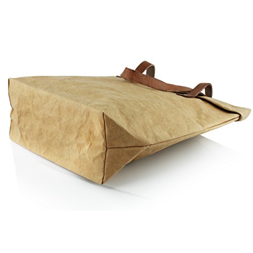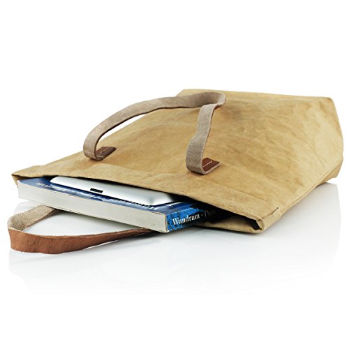 Product Description This tote bag is made of washable kraft paper. Looks and feels like leather. About washable kraft paper - It is a new product that combines the best of paper and fabric but performs like leather. It can be washed and is durable and lightweight. Each paper shows in different pattern, so makes each bag is a unique work. You can be treated and worn just like a canvas or leather bag. Beautiful and chic design for your everyday use. It is an unique addition to your accessories collection. Goes with every outfit. It is just right for those occasions where all you want to carry is your smart phone, 13" laptop, Ipad, books, wallet and keys. Perfect for working, school or shopping. 0