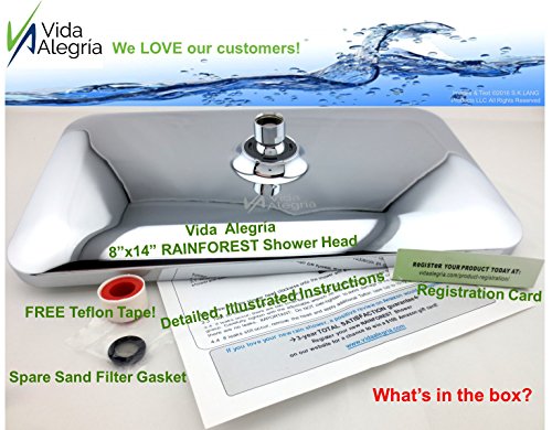 Vida Alegría RAINFOREST 14x8-Inch Chrome Overhead Rain Shower