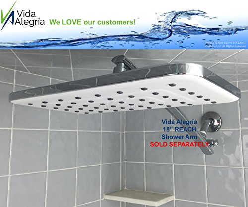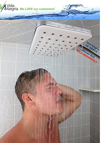 - GOOD PRESSURE REQUIRED - This ginormous shower head does require a decent pressure to operate properly, and it weighs in at 2.1 pounds, so good supporting plumbing is also needed. If you have a standard shower and shower arm, be sure to check out our SOLID BRASS REACH 18-Inch SHOWER ARM EXTENDER, sold separately on Amazon, for a perfect installation! If you prefer a SOFT RAIN Shower, check out our Spashower RAIN 8” Square model with 144 JETS, available now on Amazon.com!