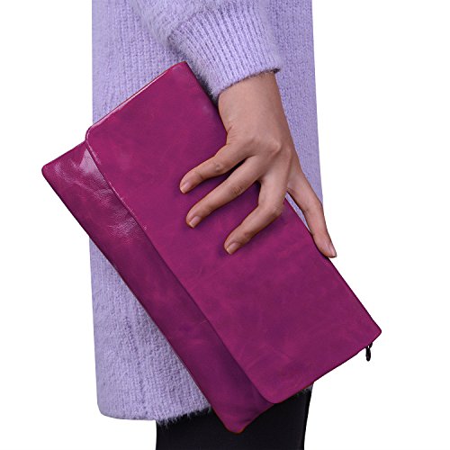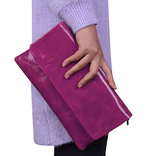 JackChris® New Women Leather Envelop Clutch Tote Bag,WBGT035