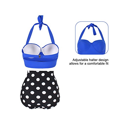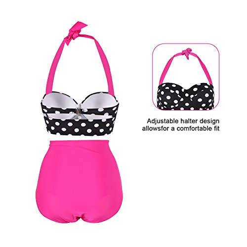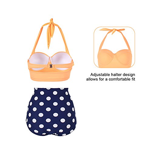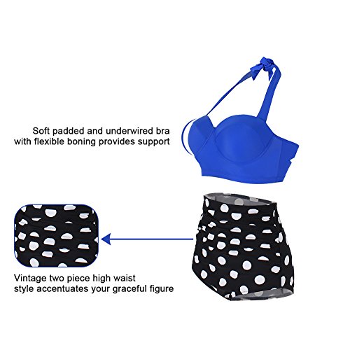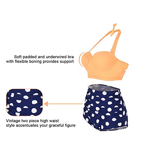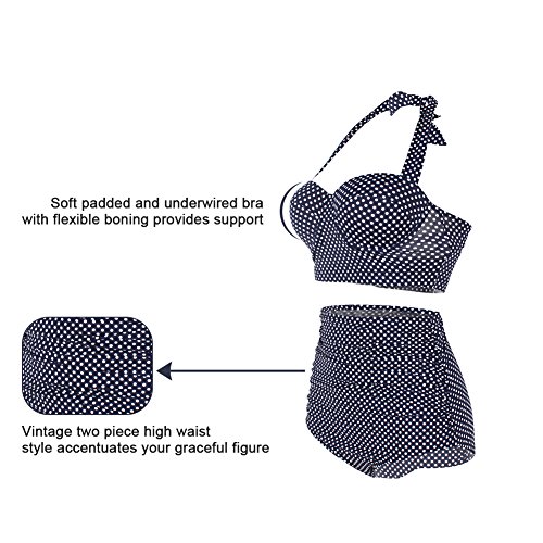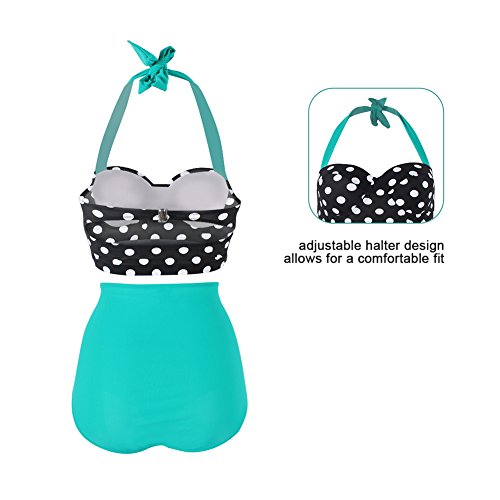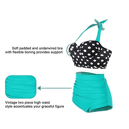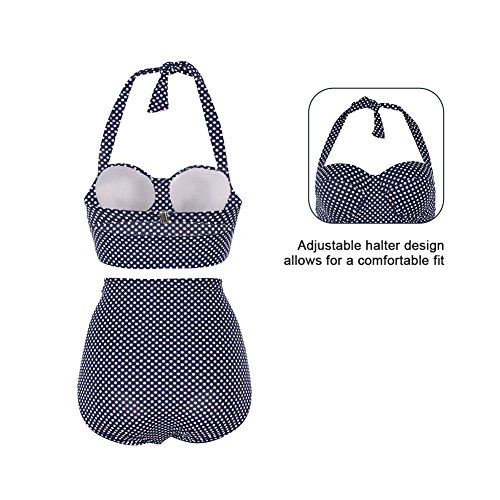 FeelinGirl 50er Damen Frauen Badeanzug Bademode Rockabilly Bikini Set-Hohe Taillen-Neckholder-bauchweg