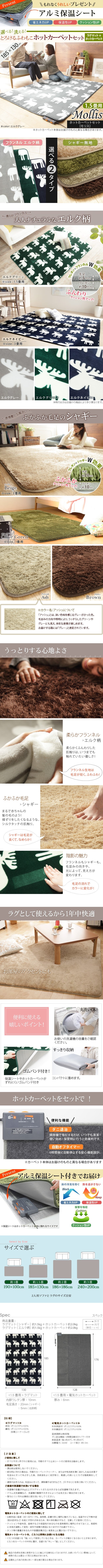 ●ホットカーペット カバー セット ラグ シャギー 北欧 エルク 無地 フランネル 洗える ふんわり 保温シート とろける