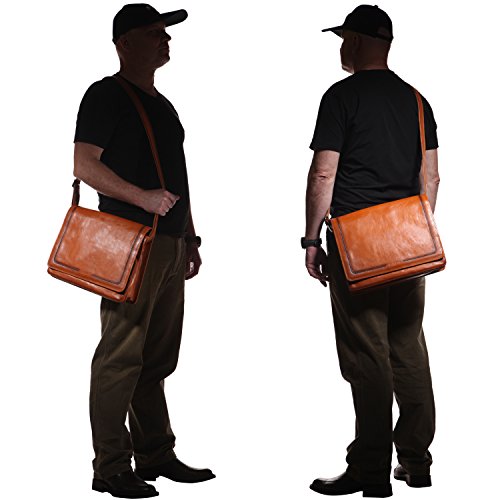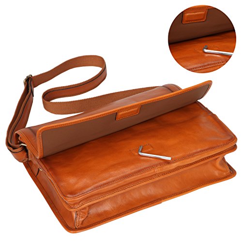-. Brand : Banuce -. ClothingSize : OneSize -. Color : Dark Beige -. Department : mens -. Feature : Italian full grains cowhides leather / Flapover with zipper closure / Undetectable but adjustable shoulder strap, drop up to 24.5 inch / Size: 14.5L*4.3D*12.25H / Main section fits A4 magazine, up to 15 inch laptop -. Model : RTOFYBM014-BG -. ProductGroup : Apparel -. ProductTypeName : LAGE -. Size : OneSize -. Title : Banuce Full Grains Leather Business Messenger Bag 14 Laptop Case