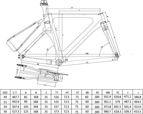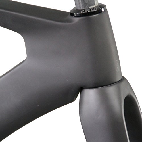 Studio : ICAN Publisher : ICAN Product Description ICAN carbon lightweight track bike frame Material: full carbon fiber T700 Finish: UD matte Frame size: 49/51/54/59cm Wheel size: 700C Tire width: 700x23mm Bottom bracket: BSA/DI2 Headset : Top: 1-1/8" , Down:1-1/2" Frame weight: 1600±40g Fork weight: 370±20g Rear dropout: 120x9mm Guarantee: 2 years Geometry Size 49cm you can see other size geometry on the photo) Top Tube (effective): 516mm Seat Tube (BB Center to Top): 487.7mm Chain Stay (actual): 380mm Front center: 559.8mm Seat Tube Angle: 75° Bottom Bracket Drop: 60mm Head Tube Length: 85mm Head Tube Angle: 72.5° Fork offset: 35mm Wheelbase: 931.9mm Stack: 471.1mm Reach: 386.8mm Package included: Frame fork seat post headset 0