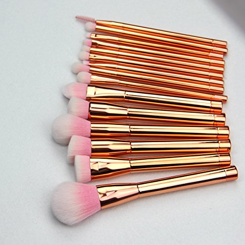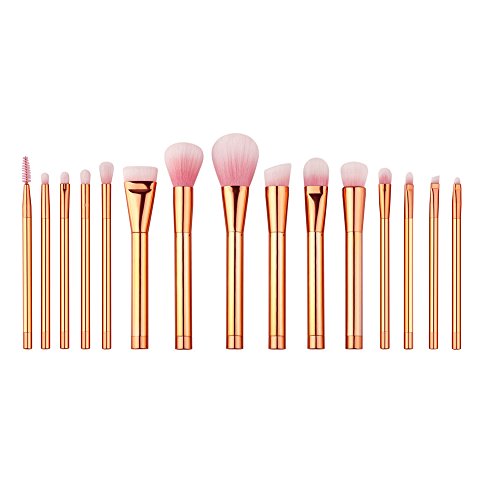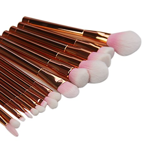 Makeup Brushes Kit, Kazora 15pcs Cosmetic Brush Full Set for Eyeshadow Eyeliner Foundation Blush Concealer + 2pcs Makeup Brush Cleaner Egg (15pcs, Gold)