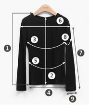 尺码 ①前衣长 ②后中长 ③胸围 ④下摆围 ⑤腰围 ⑥肩宽 ⑦袖长 ⑧袖臂围 ⑨袖口围