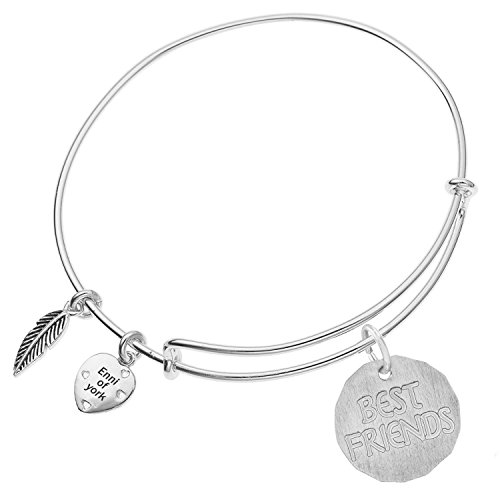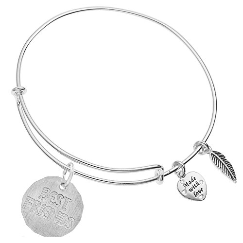 Enni of York BEST FRIENDS CHARM TAG Ani-Silver Expandible Wire Bangle Bracelet