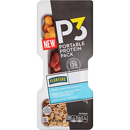 Planters P3 Portable Protein Pack, Honey Roasted Peanuts/Maple Glazed Ham Jerky/Sunflower Kernels, 1.8 Ounce