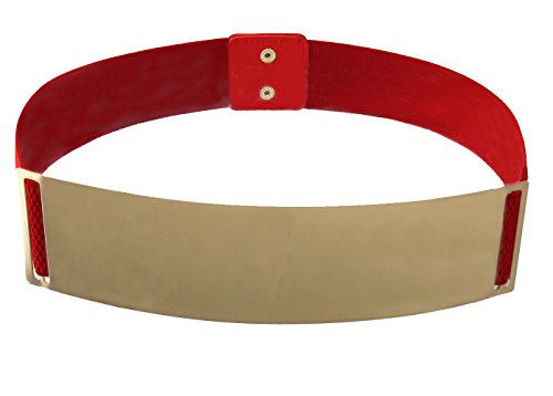 -. Binding : Apparel -. Brand : BlingKicks -. Department : womens -. Feature : This elastic stretch belt fits most waists of sizes 26 inches to 36 inches comfortably. Up to US dress size12 / Polished to mirror-pefection, the statement center plate of the belt measures 10 inches across and 2.25 inches wide. / Different color stretch materials to match similar color dress and clothes. / Wider opening for these stretch materials at both ends of the plate mean no more worrying about the belt flipping. / Easy snap buttons ensure secure close and easier takeoffs. -. Model : T500 -. ProductGroup : Apparel -. ProductTypeName : ACCESSORY -. Title : BlingKicks Womens Wide Polished to Perfection Mirror Metal "NO-FLIP" Stretch Belt